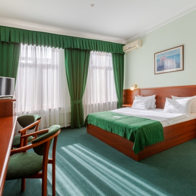Отель находится на десятом этаже прекрасного здания, что позволяет оставаться вдалеке от городской суеты. Большие окна с видом на город, просторные светлые номера с хорошей мебелью, современный дизайн, внимательный персонал произведет на гостей приятное впечатление.