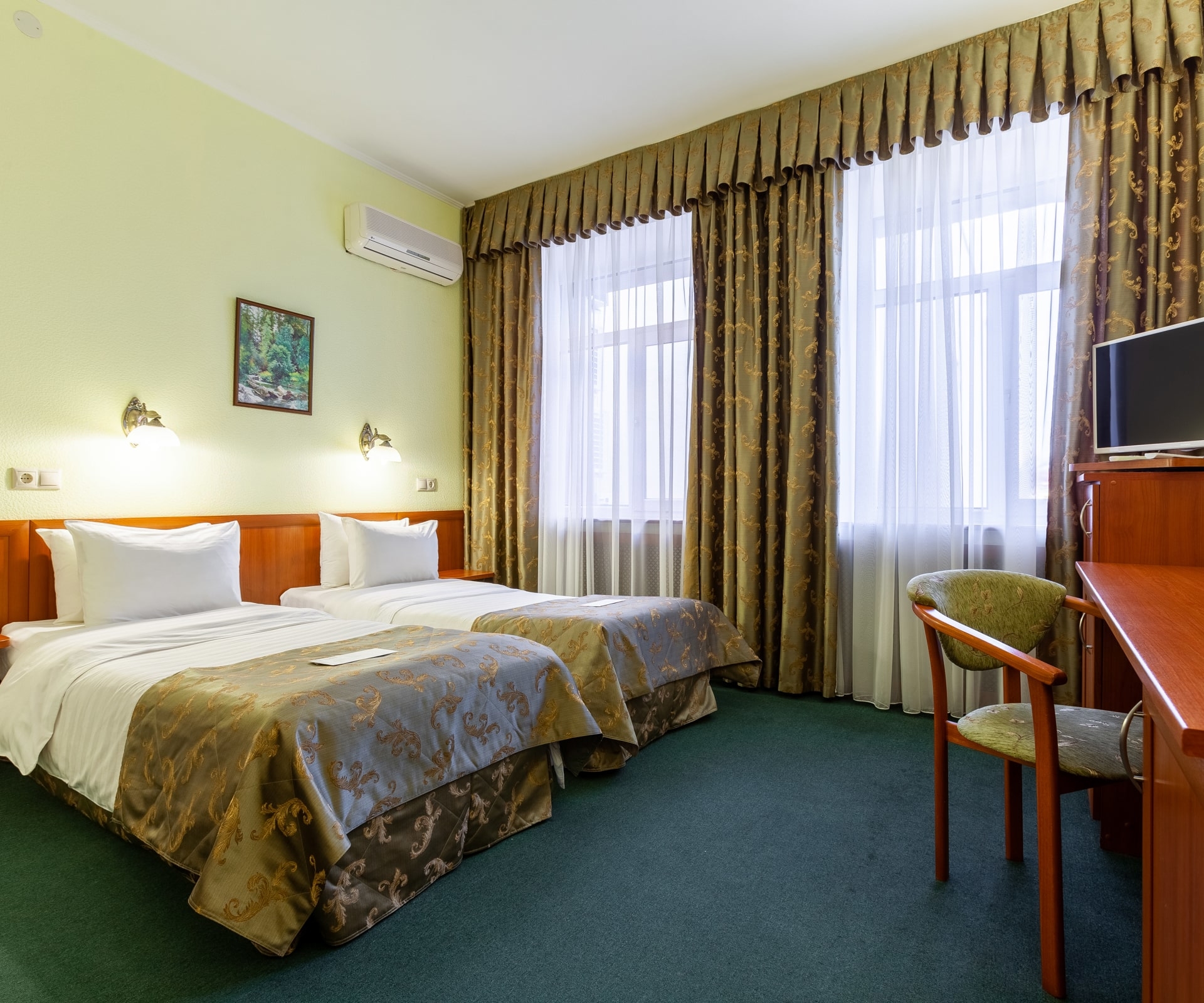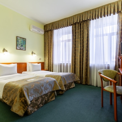 - При бронировании трёхместного номера, предоставляется размещение категории TWIN+ EXB (стандартный номер с двумя раздельными кроватями + дополнительное спальное место( возможно еврораскладушка))